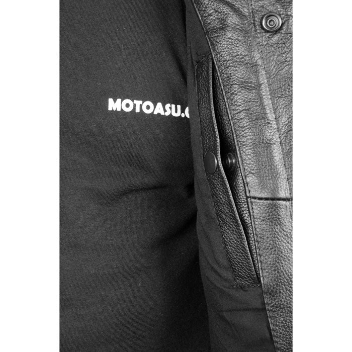 TV-sarja Sons of Anarchy / SOA - nahkaliivimalli. Pystykaulus ja piilotetut painonapit edessä. Kolme taskua vuorissa sisäpuolella, 1 iso vetoketjullinen + 1 iso nappillinen + 1 pieni kännykkä-/tupakkatasku. Materiaalina erittäin korkealaatuinen musta naudannahka ja musta puuvillavuori. Liivin koot ovat melko tiukat, eikä sivuissa ole nauhoja, joita voisi löysätä tai kiristää. Jos valitset kahden mahdollisen koon välillä, valitse suurempi.
